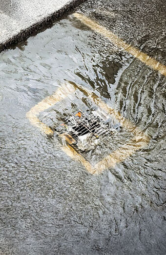 Urgent unblocking of stormwater pits and grated inlets clogged with leaves, dirt, or debris during storms to prevent backflow and surface flooding.